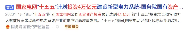 电网投资力度全面升级,硬核增量持续释放。国家电网十五五规划固定资产投资达 4 万亿元,同比提升 40%;南方电网同步投入近万亿元,两大电网合计五年投资接近 5 万亿元。同时,算电协同正式纳入新基建重点范畴,政策明确新建智算中心绿电占比不低于 80%,强制要求算力与电力深度绑定、协同发展。