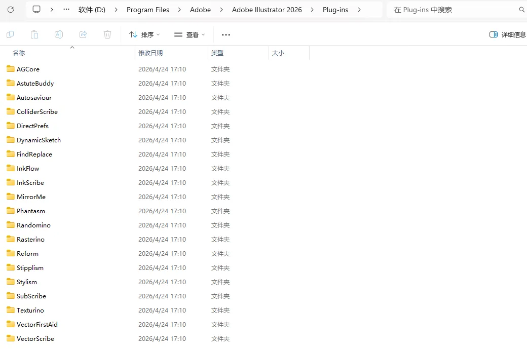 安装完成后,会自动生成一个名为“Adobe Illustrator”的文件夹。请将该文件夹中 Plug-ins 目录下的所有文件,复制到你电脑上所安装的 Adobe Illustrator 软件对应的 Plug-ins 文件夹中即可。