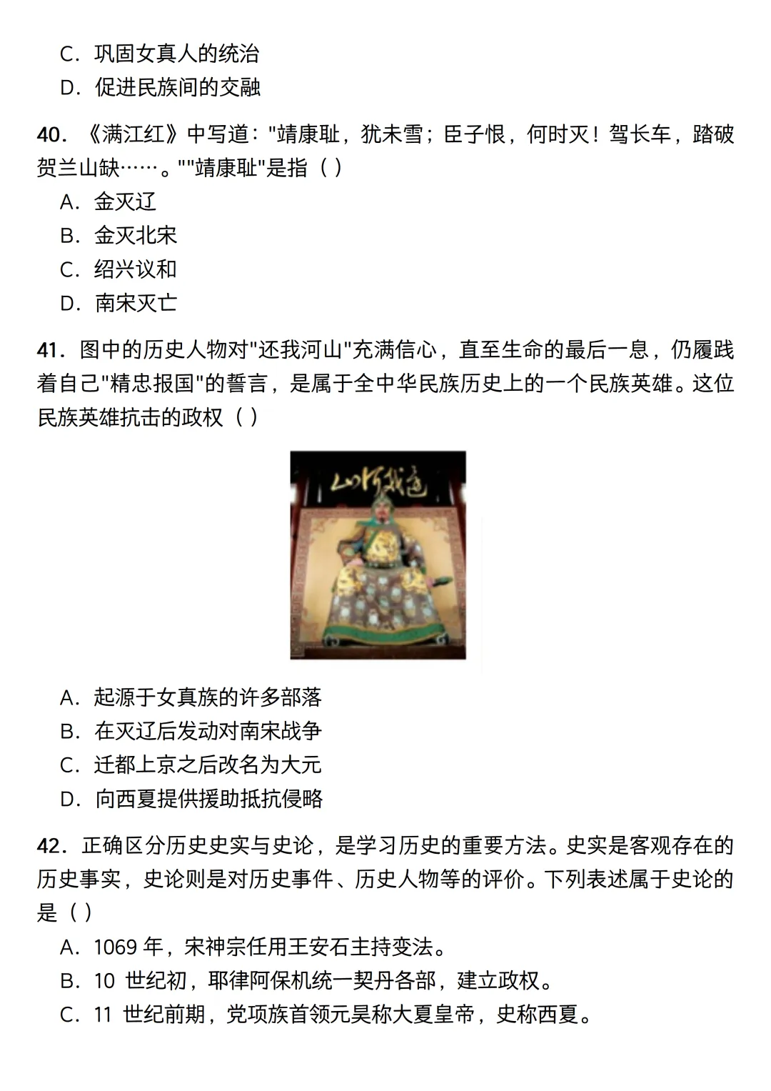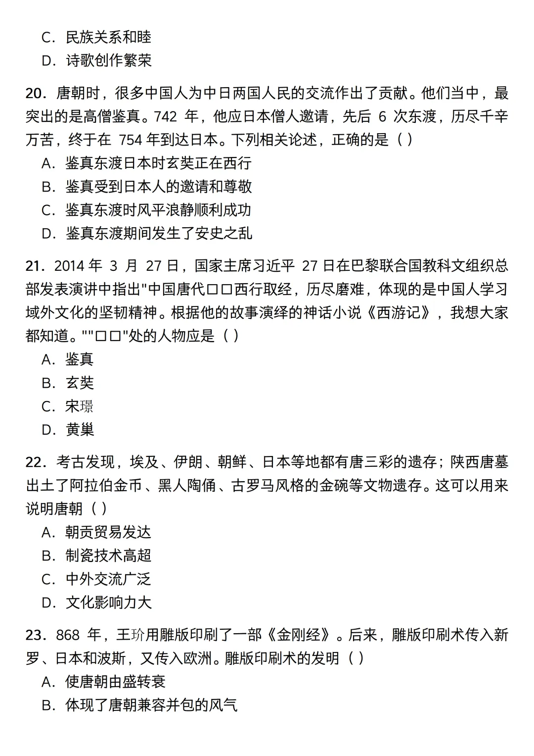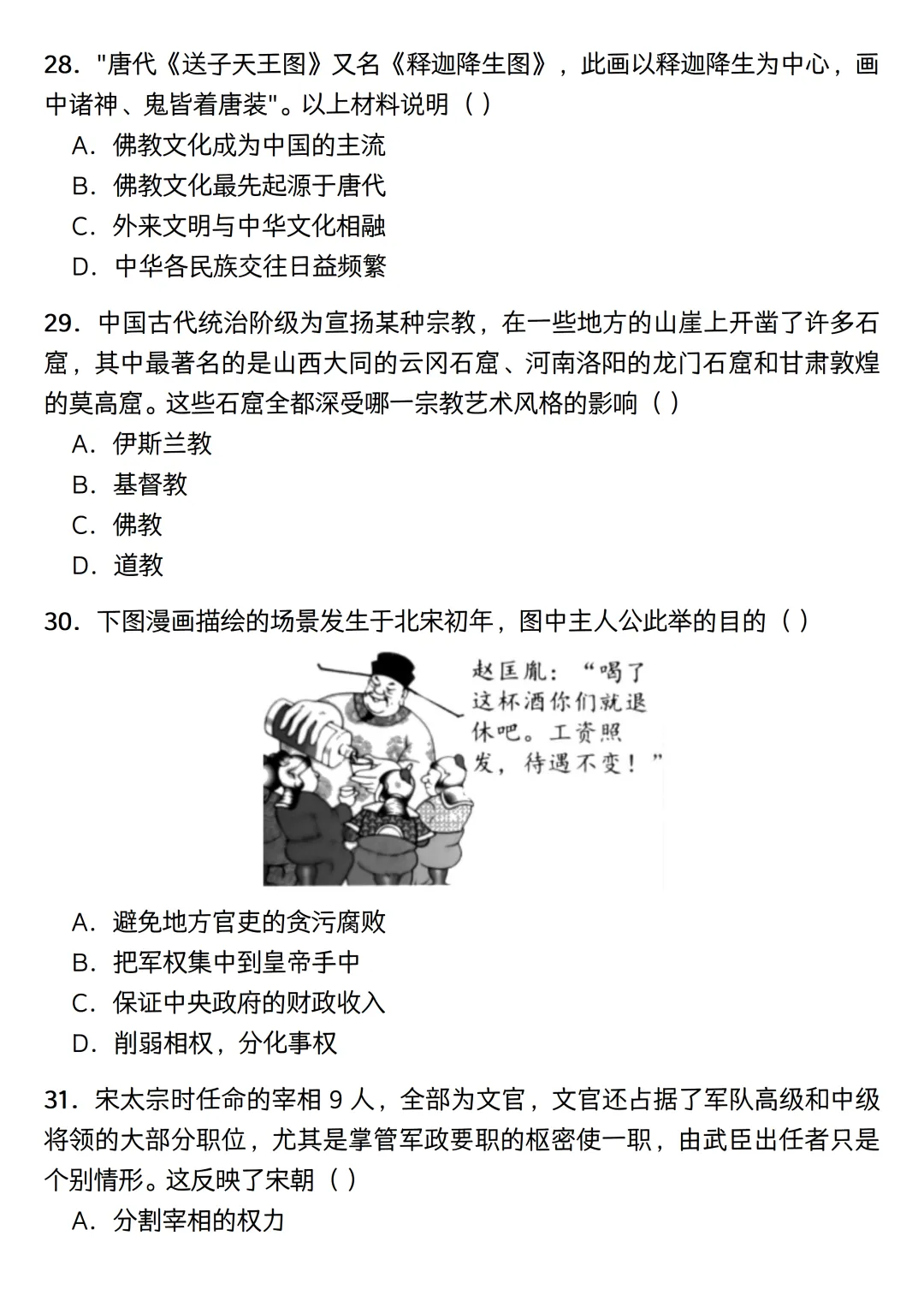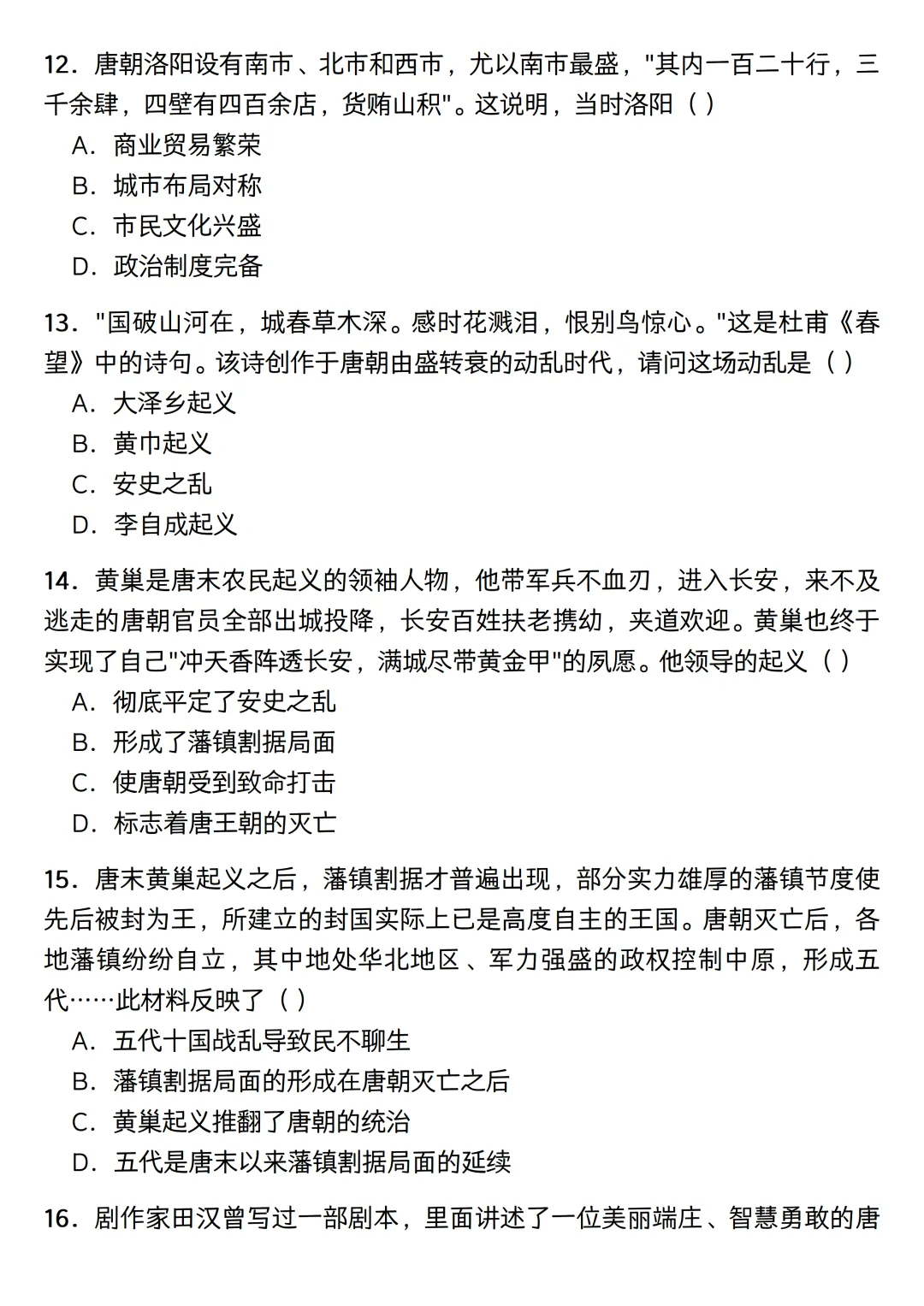 内容范围刚好涵盖隋唐到宋元时期。考虑到平时的碎片时间,这份练习没有凑完整的题型,纯粹是一个七下历史选择题专练。题目一共50道单选,设定了40分钟的限时,主要用来给学生摸底基础史实,以及熟悉一些常考的史料阅读。