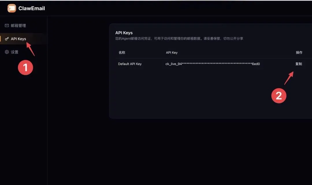 按图中顺序拿到自己邮箱的api key
