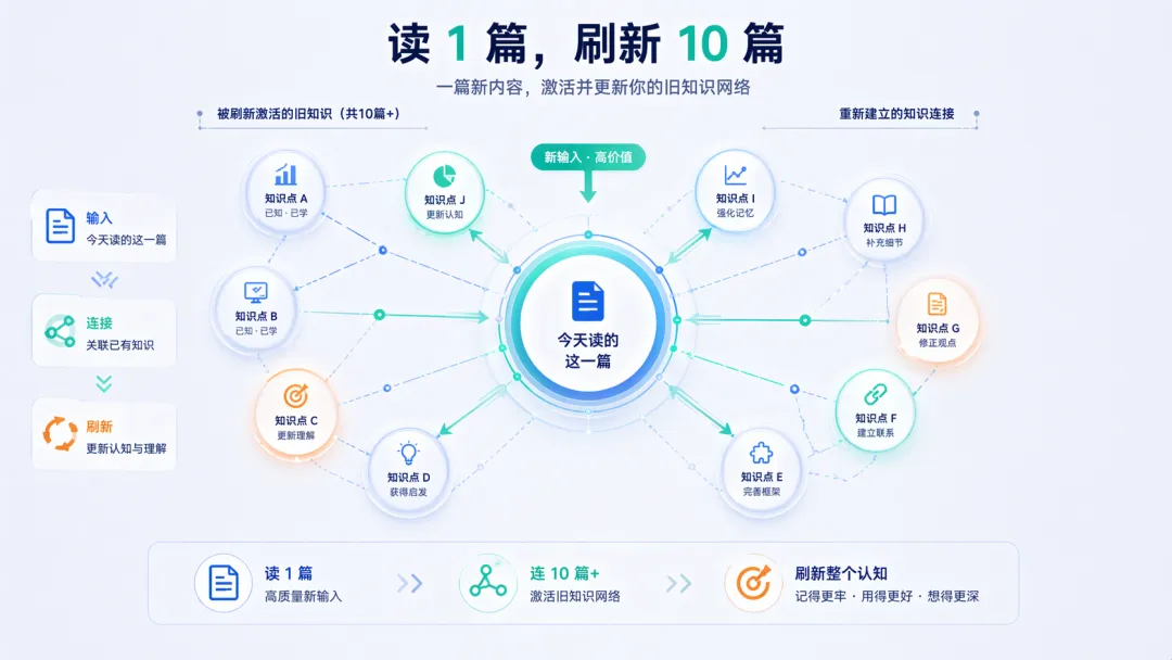 不是单篇文章被记住,而是旧知识会被新知识不断激活