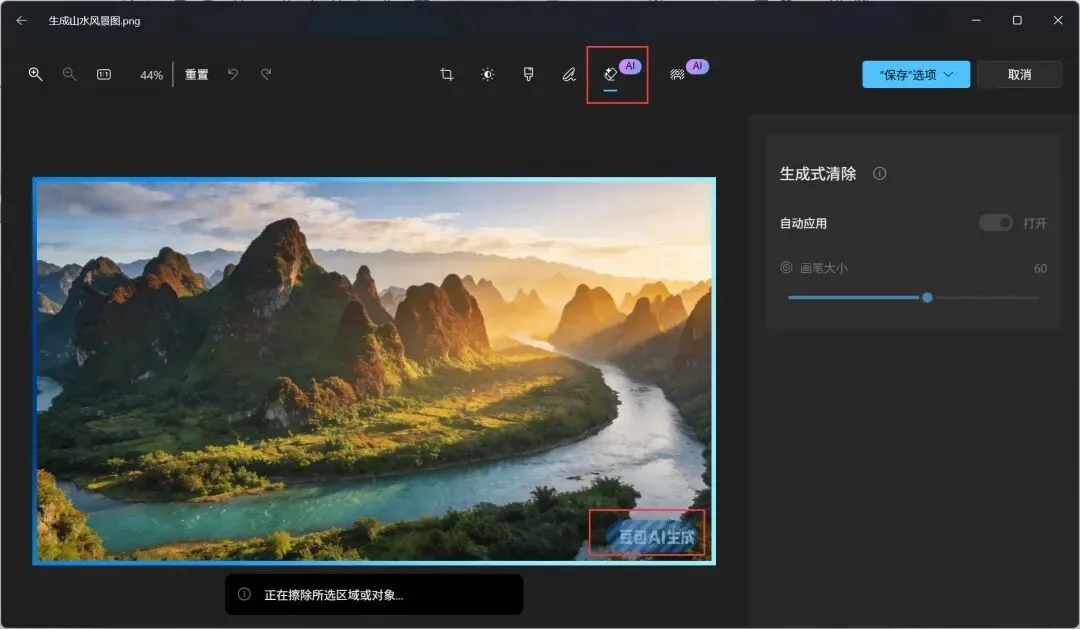 再选消除工具,涂抹水印位置,系统会自动帮你处理。
