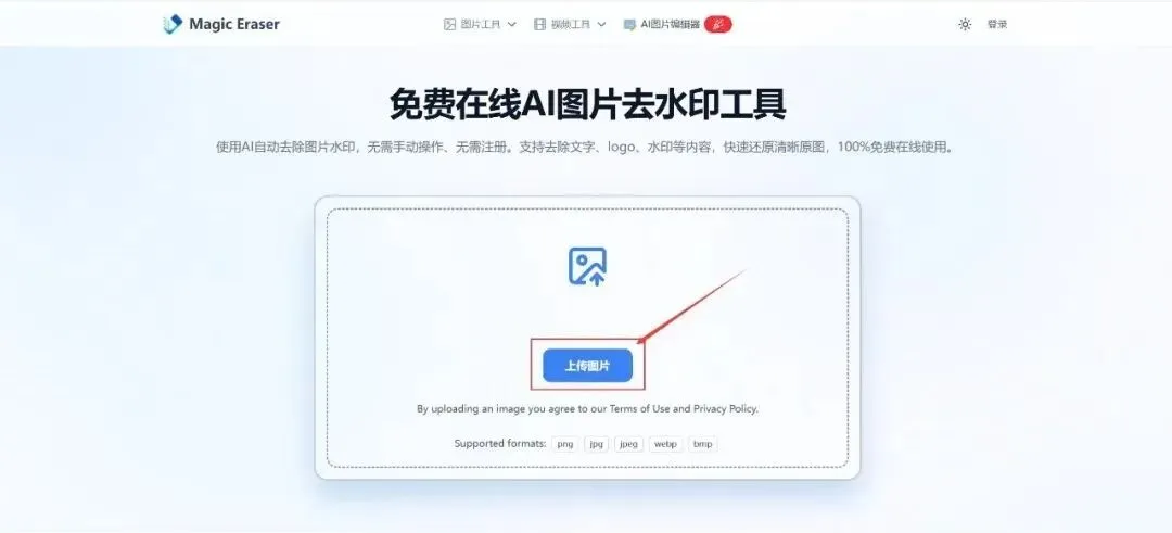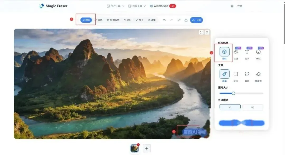 上传图片后,直接用画笔涂抹水印区域,系统会自动消除。