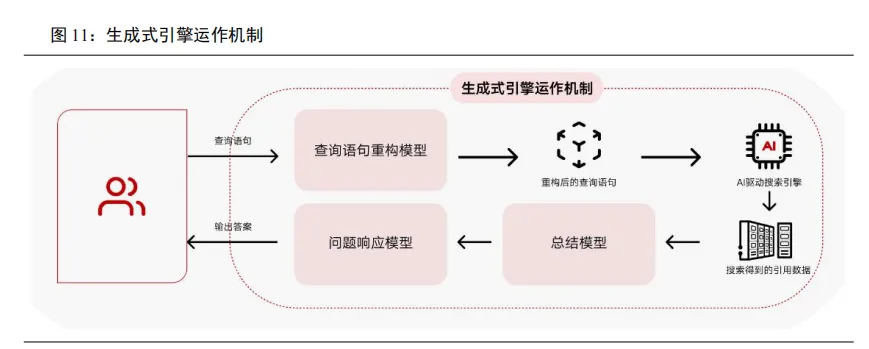 生成式引擎优化是一种前瞻性的数字营销策略,通过优化品牌内容以提高其在AI搜索平台中的可读、可信、可用程度。生成式引擎通过多模态协作实现“从问题到答案”的全过程。用户输入查询语句后,系统先通过查询重构模型解析意图并优化表达,再由AI驱动搜索引擎跨源检索网页、文档、数据库等信息。返回的数据会交给总结模型进行聚合、去冗余和提炼,最后由问题响应模型生成可读、可信、可解释的自然语言答案。其本质在于:1)对数据链路的定向干预:以品牌营销目标为导向,对AI驱动搜索引擎抓取的数据源进行结构化优化,通过训练数据清洗、引用媒体权重重构等方式,定向校准AI内容生成的偏好轨迹,使品牌信息输出更符合营销场景需求;2)对曝光概率的增强:利用AI生成的概率模型特性,将数据干预转化为品牌曝光的确定性增长策略。通过精准调控内容生成概率,实现品牌/产品在AI输出中的“优先提及权”,在信息过载的传播环境中抢占用户注意力高低。