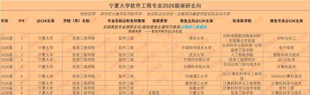 宁夏大学软件工程2026推免去向曝光:清北交复不是梦,中科院 + 985 全覆盖!