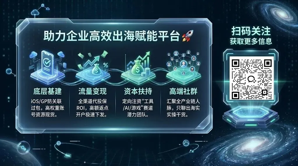 💡 掘金蚁AntGlobal 内容定位:宏观出海趋势、大盘数据、正规应用增长模型。对口业务:推广发行(联发融资)。目标客户:缺资金、缺买量团队的优质工具/AI/合法游戏开发商。