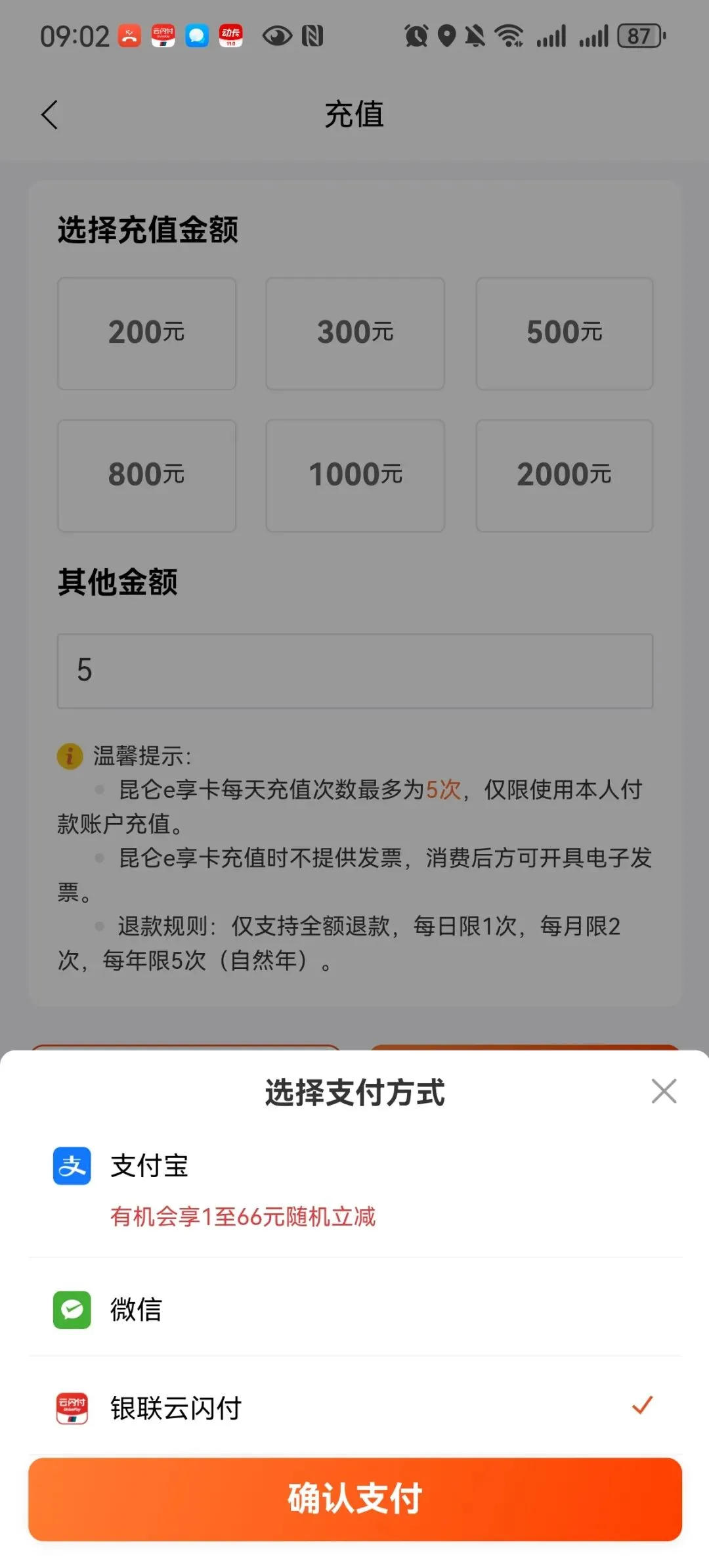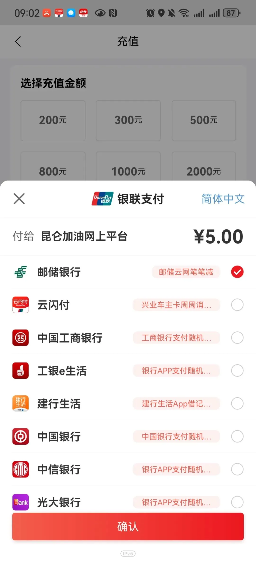 中油好客APP,云网支付,邮政储蓄卡支付5-1元(3次)