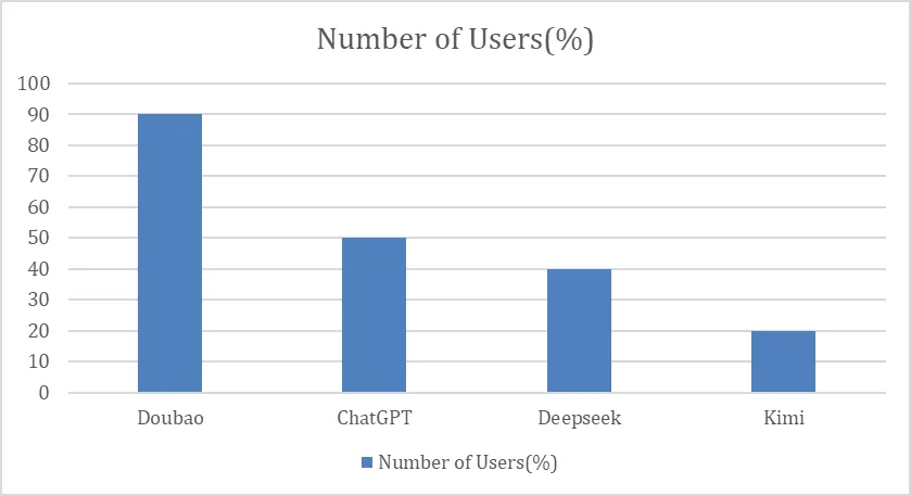 The AI tool market among surveyed students demonstrates a clear hierarchical pattern, with Doubao accounting for nearly half of total usage. This finding is particularly striking given ChatGPT’s global popularity, highlighting Doubao’s strong localization advantages within the Chinese educational context.