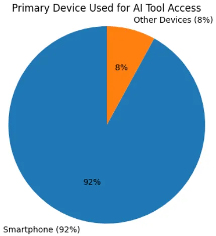 Device preference analysis showed a strong mobile-first tendency, with 92% of AI tool interactions conducted via smartphones. This usage pattern was strongly correlated with synchronization capability ratings (r = 0.76, p < 0.01), indicating that seamless cross-device experiences play a key role in sustained adoption.