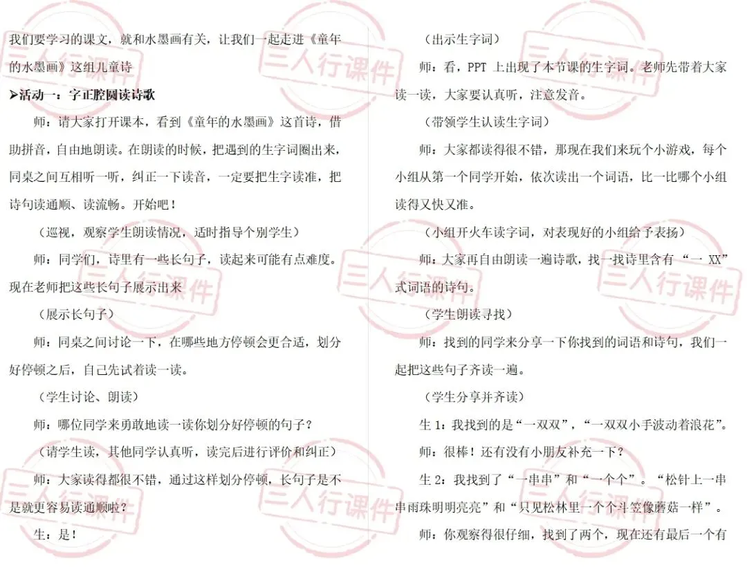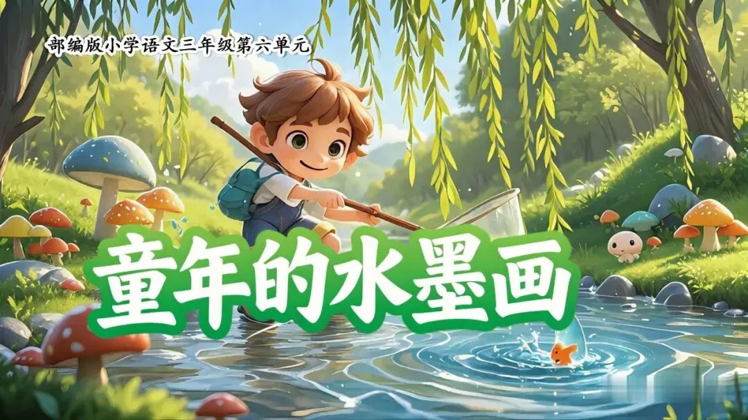 ……我们要学习的课文,就和水墨画有关,让我们一起走进《童年的水墨画》这组儿童诗