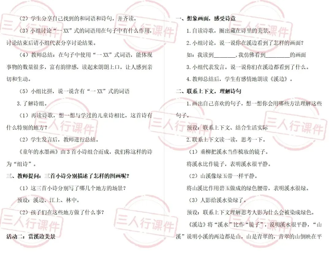 2.小组讨论,说一说你在溪边看到了怎样的画面?