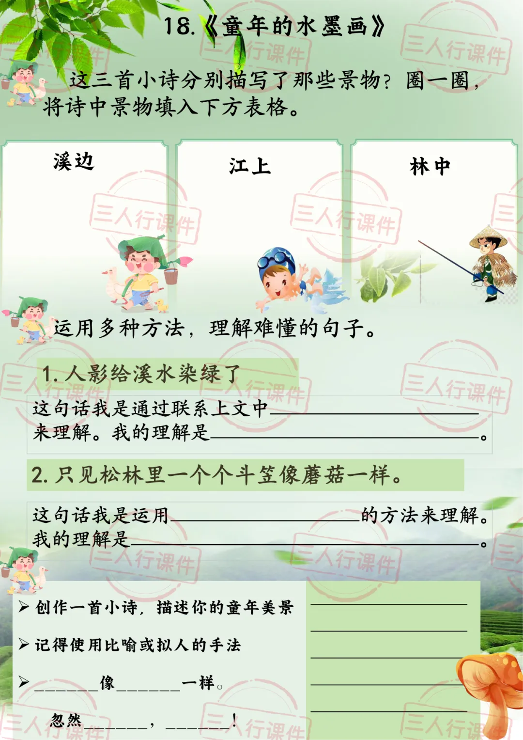 【2026新版Ai赋能】三下《童年的水墨画》轻绘纯真时光!(共两课时包含配套教案逐字稿学习单)