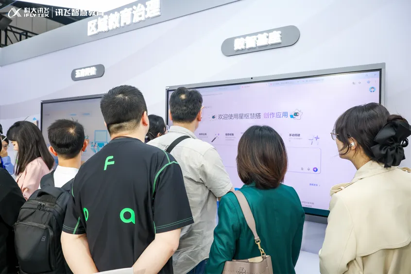 在区域教育治理展区,展出了讯飞星枢教育数智基座与讯飞育星图,为教育管理者提供科学决策支持。