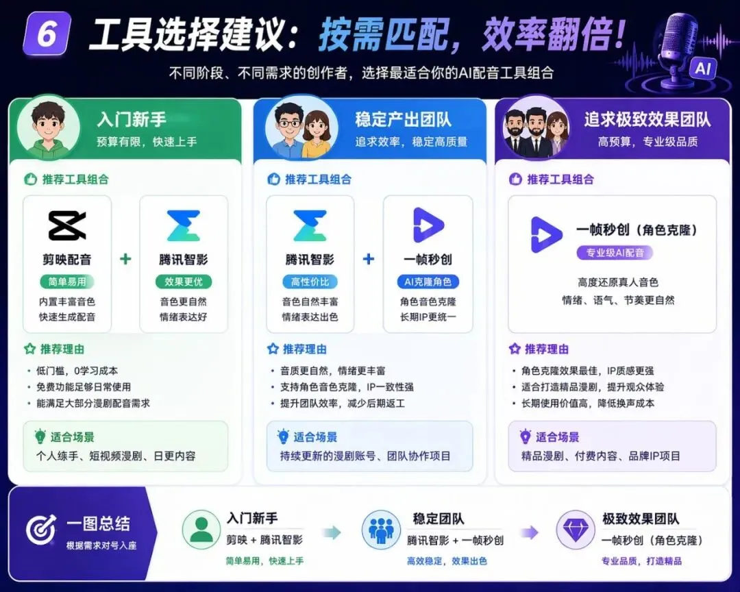 技巧3:多工具混用。我的常用组合是:腾讯智影做主力配音,加讯飞做情绪补充,加一帧秒创做关键高光片段。这样既能控制成本,又能保证质量。