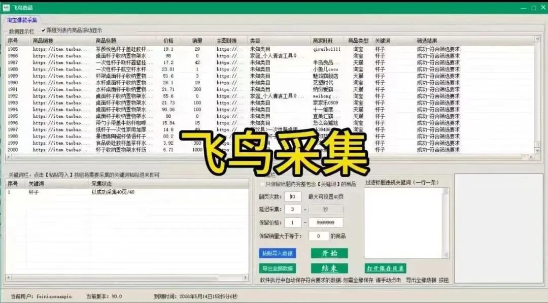 飞鸟采集-淘宝采集软件-不用登账号-实时数据让你用不完