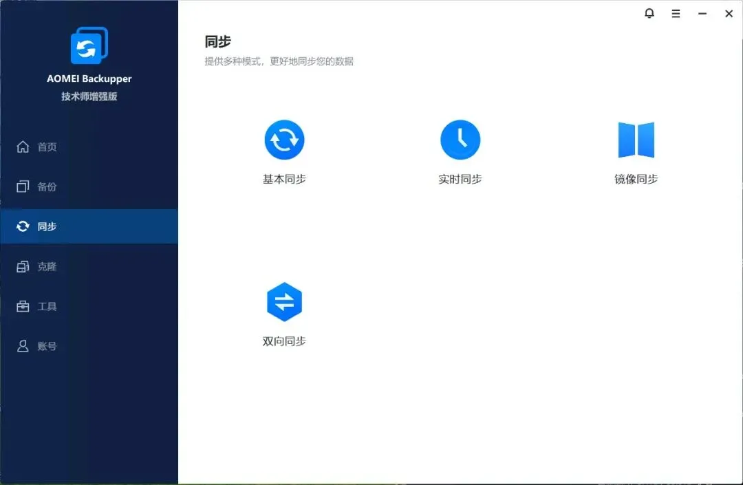傲梅备份工具可以轻松备份还原各种数据,具有系统备份与还原,文件/分区/磁盘备份与还原,增量与差异备份,定时备份,克隆数据,迁移系统等功能。