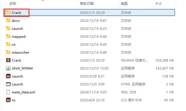 24.回到【Crack】文件夹,鼠标右击【NX2412】,选择复制。