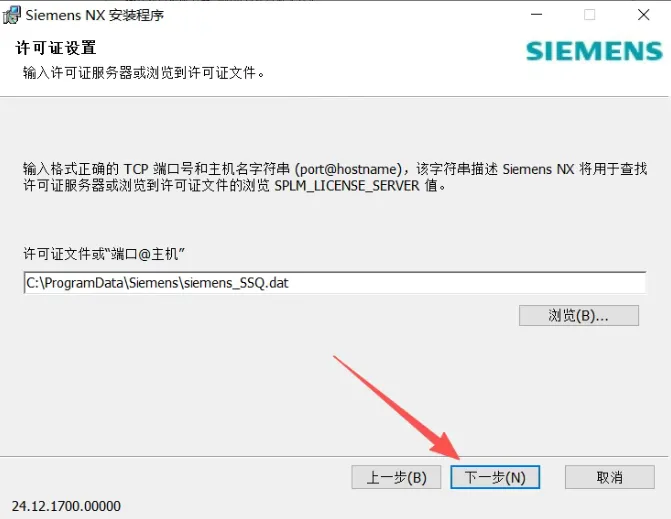 18.填入C:\ProgramData\Siemens\siemens_SSQ.dat,点击【下一步】。
