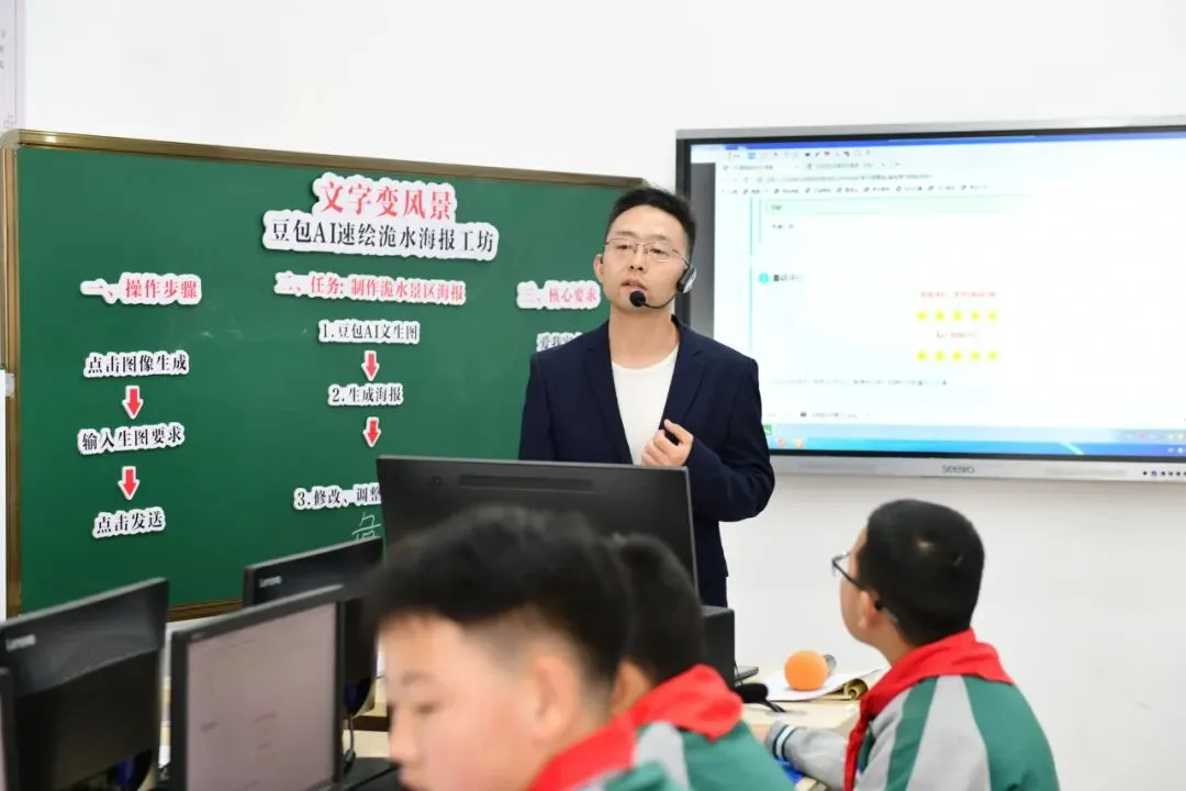 武汉市洪山区第十二小学郭维彬老师以《当哪吒精神遇上AI创想——生成式人工智能初探》为题,用经典IP点燃学生AI兴趣;荆州市沙市大赛巷小学陈爱华老师执教《生成式人工智能——让文物动起来》,将松滋文化与现代科技结合,让文物“活”在课堂;我校谭辉老师带来《文字变风景:豆包AI速绘洈水海报工坊》,带领学生用AI为家乡创作海报,融地方特色与技术实践于一体;武汉市光谷第二小学王菁老师以《小小能源规划师——设计全国风光能源互补方案》,立足国家战略开展项目式学习,培养学生科学思维。四节课例创意纷呈,展现了信息科技课堂的无限可能。