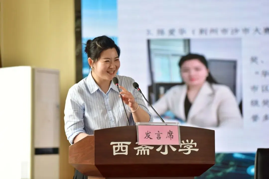 西斋小学校长李广琼发表致辞,对各位专家、教师的到来表示热烈欢迎,并对本次送教表达由衷的感谢。