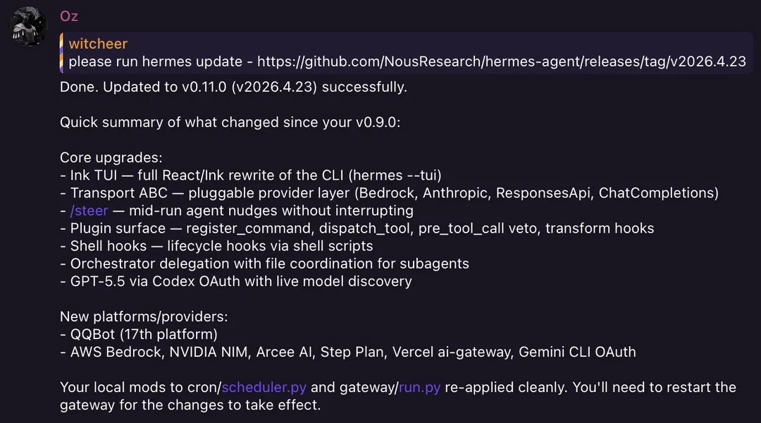Hermes Agent 发布 v0.11.0,支持多个新模型与 QQBot #5
