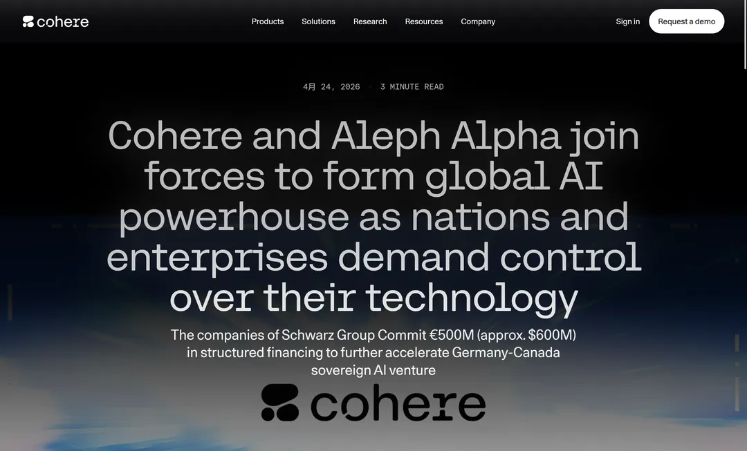 Cohere 联手 Aleph Alpha 组建主权 AI,Schwarz 领投 6 亿美元 #10