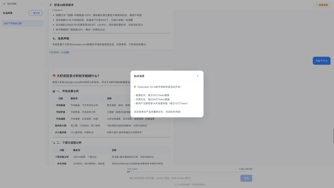 Deepseek V4 A股投资AI助手尝鲜体验活动开启