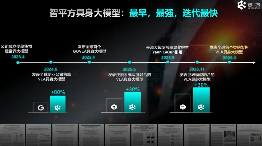 近年来世界模型概念持续升温,行业出现“VLA(视觉-语言-行动)时代即将终结,将被世界模型取代”的争议声音。在2026 POWER Robot未来大会主论坛上,智平方创始人兼CEO郭彦东正面回应这一争论,明确给出定调:VLA时代并未结束,反而在持续变强,依旧是通往物理世界智能的最强主航道,世界模型并非VLA的颠覆者,而是能力加持者。郭彦东指出,任何真实世界的智能系统都离不开感知、推理、控制三大核心,变化的只是三者的组织方式,智平方将VLA发展划分为三阶段,最新演进方向是类脑分层结构的VLA智能系统。在技术落地层面,智平方不断实现代际突破:2024年推出全球创业公司首个VLA大模型,模型规模仅为谷歌同类的1/20,性能提升超80%;2025年新一代架构性能超越国际标杆Pi0达30%;本次大会发布全球首个类脑架构VLA(NeuroVLA),让机器人拥有类似“肌肉记忆”的持续进化能力,实现毫秒级响应,标志着机器人从执行工具向可自优化智能体迈出关键一步。本次大会还同步推出全球首个一站式开箱即用的具身模型开源社区AlphaBrain Platform,推动具身智能进入生态竞争新阶段。