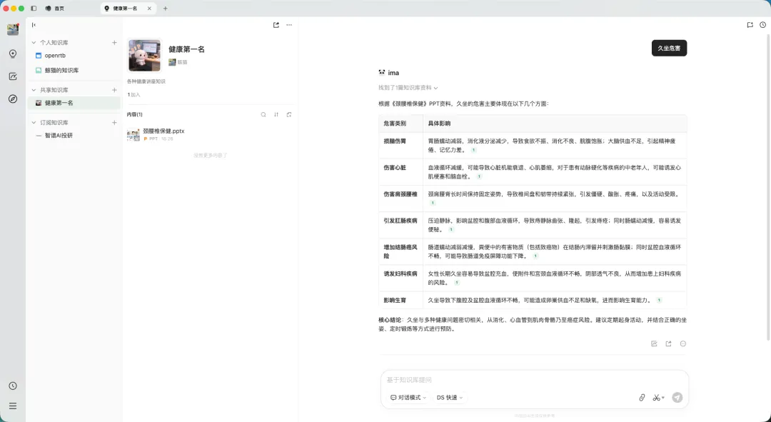 ima 是腾讯出品的AI知识库工具,支持客户端、小程序、网页等多端同步访问,还能通过微信直接提问。