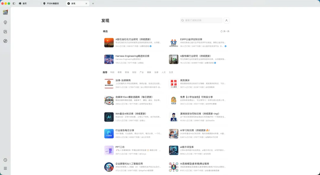 图:发现页面订阅优质知识库