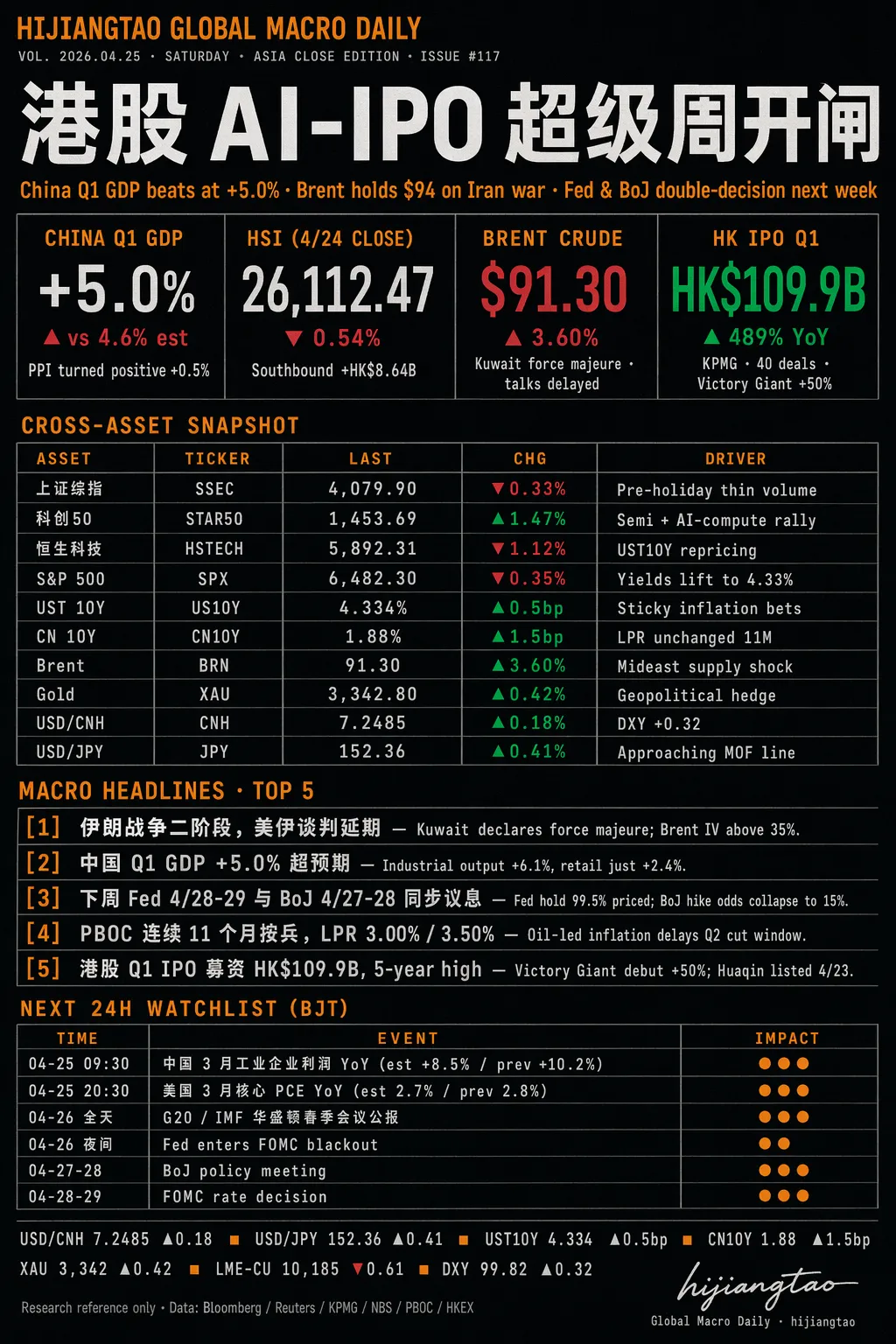 过去我每天早上第一件事是打开七八个 App——X、雪球、财联社、Bloomberg、WSJ、几个券商晨报——像仓鼠一样囤信息,囤完还来不及消化就开盘了。焦虑感是从起床开始的。