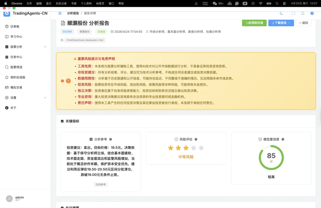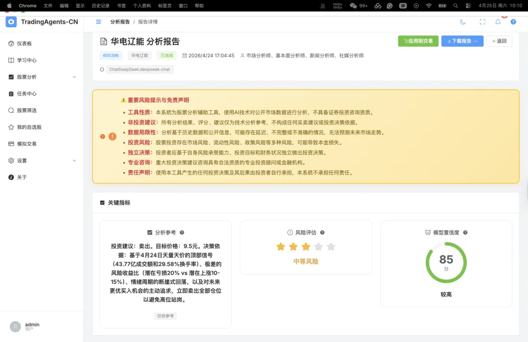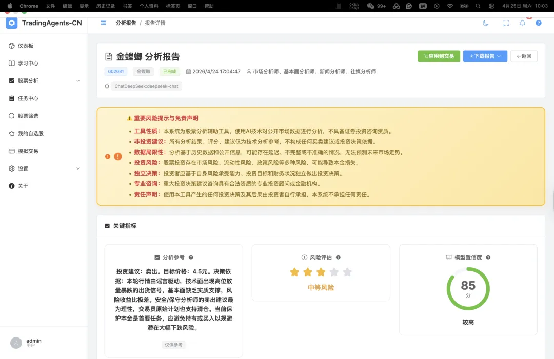 作者编:这是第三篇依据每日热力股选出股票并喂给TradingAgents进行分析的笔记,但TradingAgents无一例外将所有股票均给出卖出的指令,详见之前文章涉及的股票和分析。目前笔者怀疑要不是这个TradingAgents被设计的过于谨慎就是这位AI风险管理委员会主席有行为偏差。或者热力股总是伴随过热的买卖指数导致AI做出了一致的判决。只能让时间证明这个AI军团的靠谱程度。