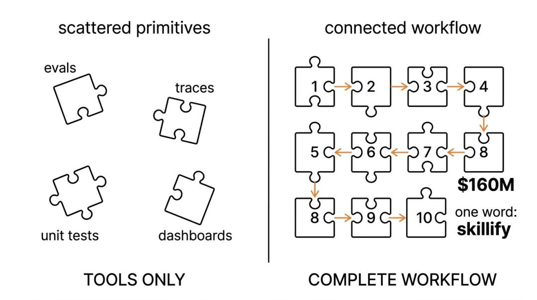 每一次失败 → 一项技能 → 带完整的评估 → 每天自动运行。