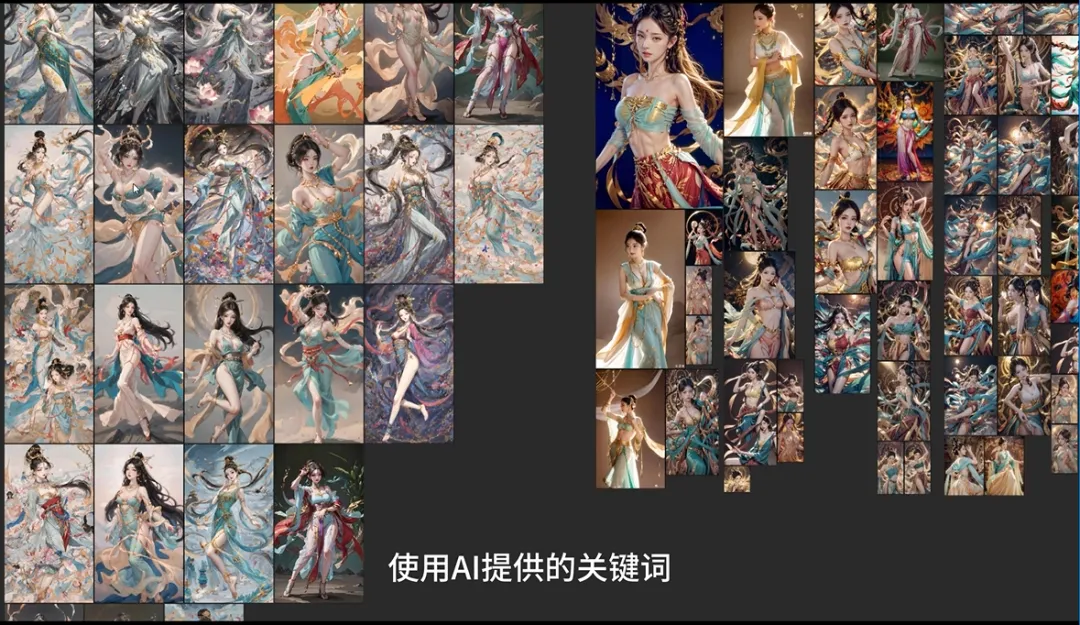 演示如何使用AI绘图软件生成我们想要的敦煌飞天的原画图片,利用AI文生图功能,AI生成出原画参考。