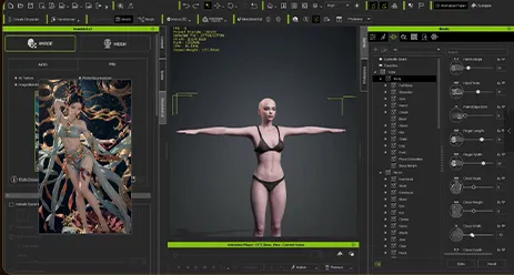 利用AI生成的敦煌飞天2D图片转3d模型的方式Character Creator辅助我们快速生成3D角色模型,并快速绑定骨骼调整造型。