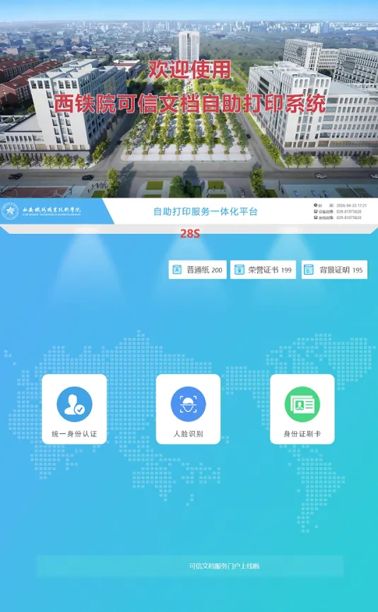 为深入推进智慧校园建设,坚持以“需求为王、以人为本”理念紧贴师生需求服务,切实实现“数据多跑路,师生少跑腿”,让大家足不出户就能便捷办理各类证明、证书业务,我校可信文档管理系统正式启用!各校区自助打印终端同步布设完成,线上线下一体化的文档下载、打印、验真服务全面开放,一站式解决你的文档办理需求!