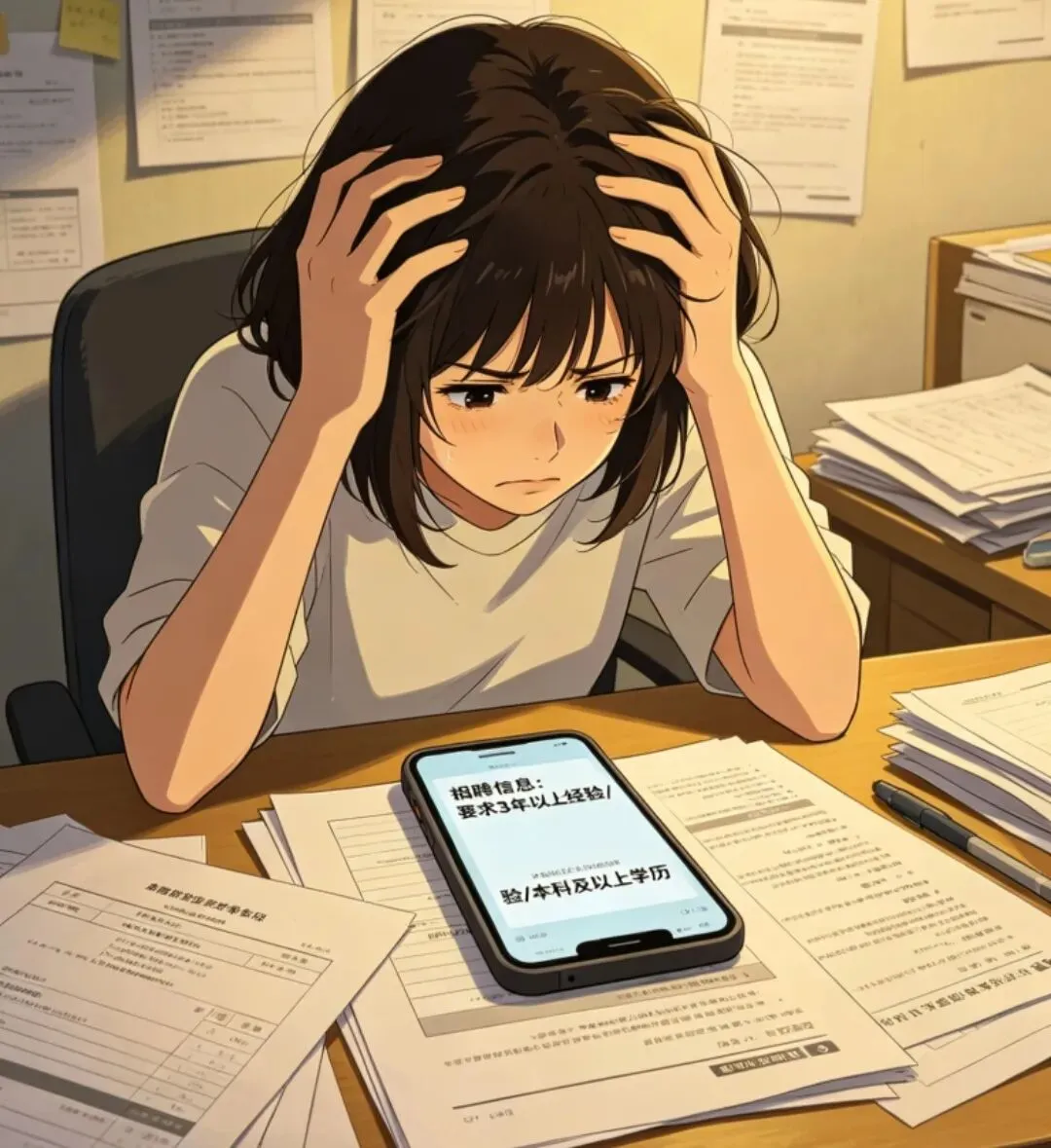 明明只是看着屏幕上密密麻麻的岗位信息,一条条硬性的任职要求,却像是有一块巨石压在胸口,喘不过气,原本做好的心理建设,在这一刻彻底崩塌,连认真看完一个岗位详情的勇气,都慢慢消失了。