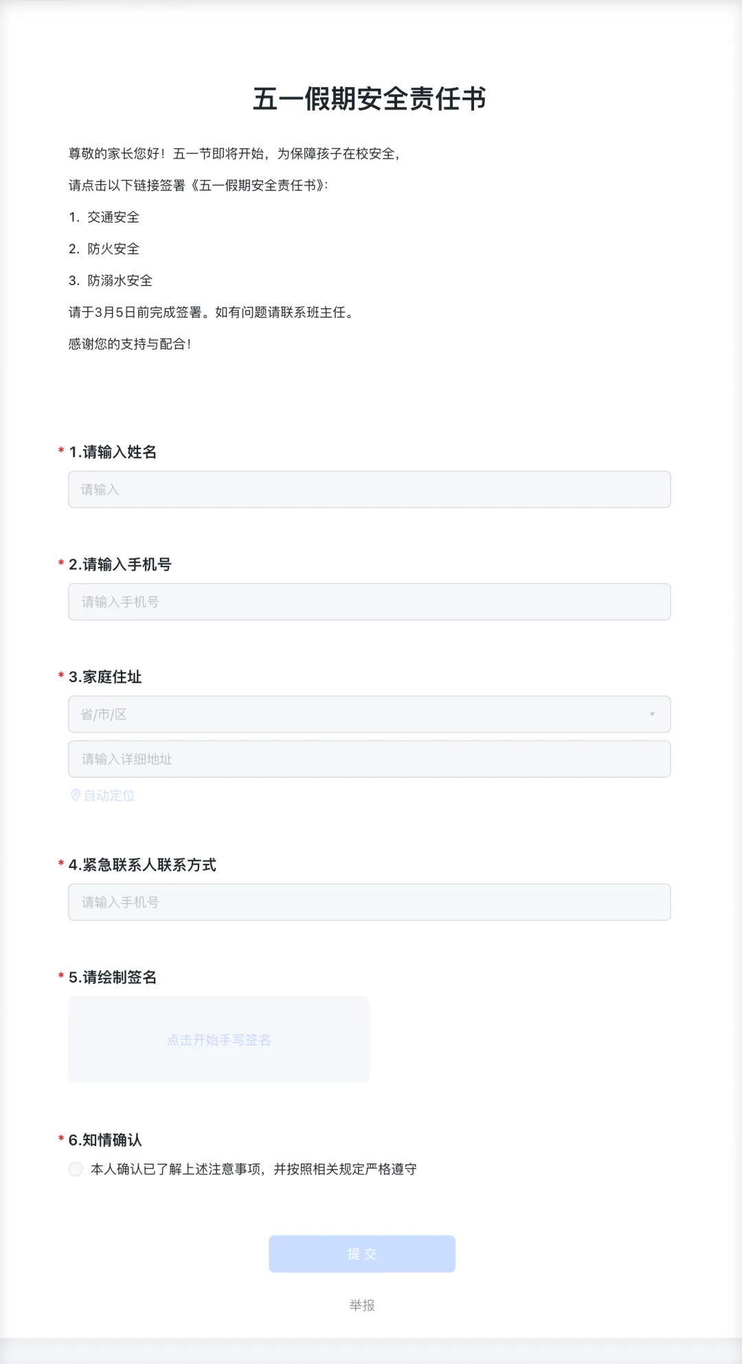 制作《五一安全责任书》家长签署系统