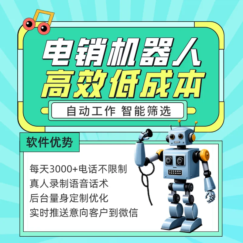 4、省心省力,人工打电话一天都得坐着打,什么也干不了。机器人打的话,只需设置好后台,软件自动运行。销售可以出差、开会、办公都不影响,有意向客户微信直接能收到通知,非常方便