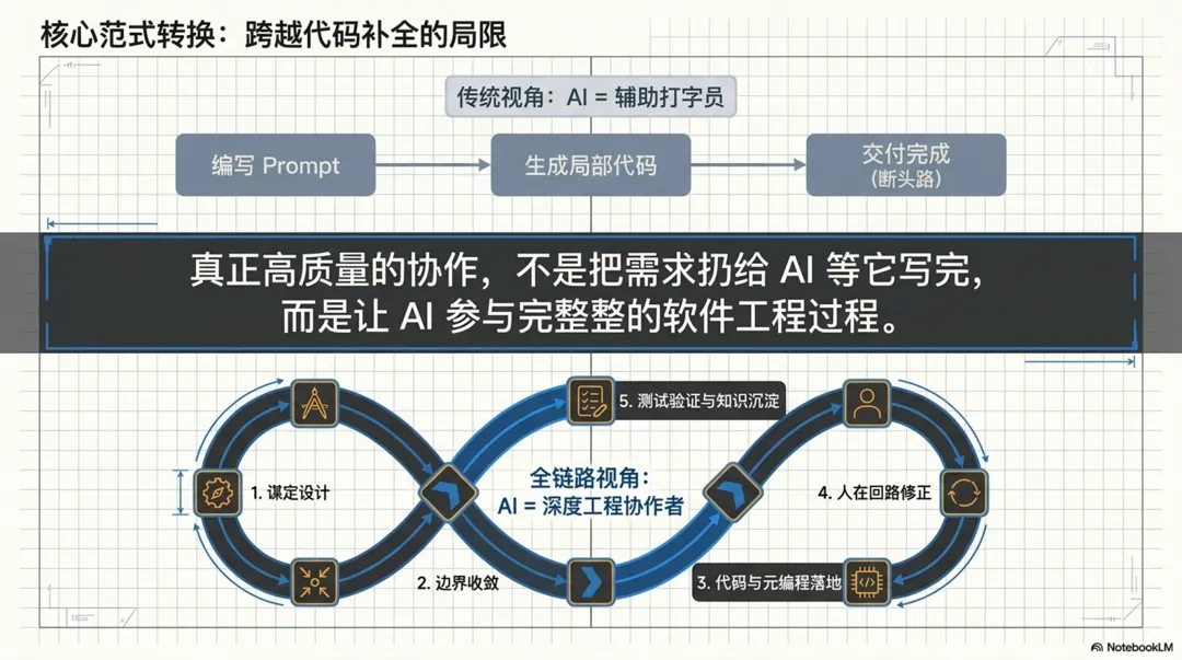 现在很多人提 AI 辅助编程,理解还是停留在“把需求扔给 AI,然后等它写完”。但真正高质量的协作过程,并不是这样。