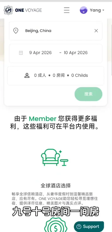 ONE VOYAGE,一个全面的全球旅游和预订平台,旨在满足您的所有旅行需求,提供一站式解决方案,用于预订住宿、航班、租车等。