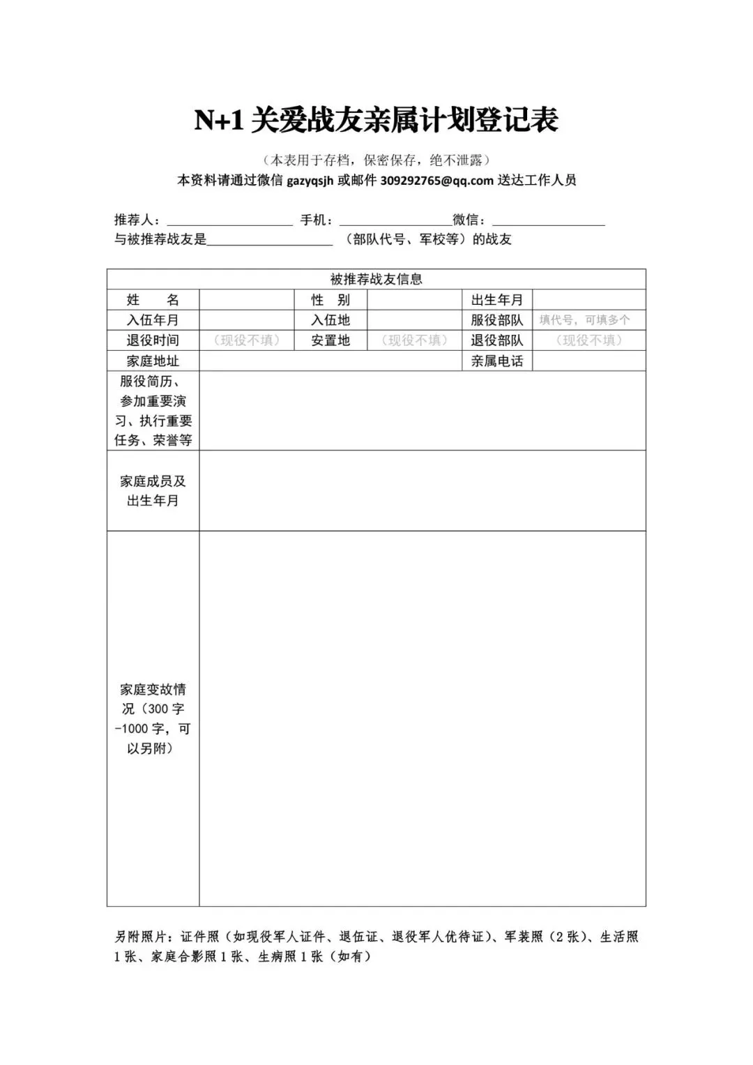 我要推荐-N+1关爱战友亲属计划登记表下载