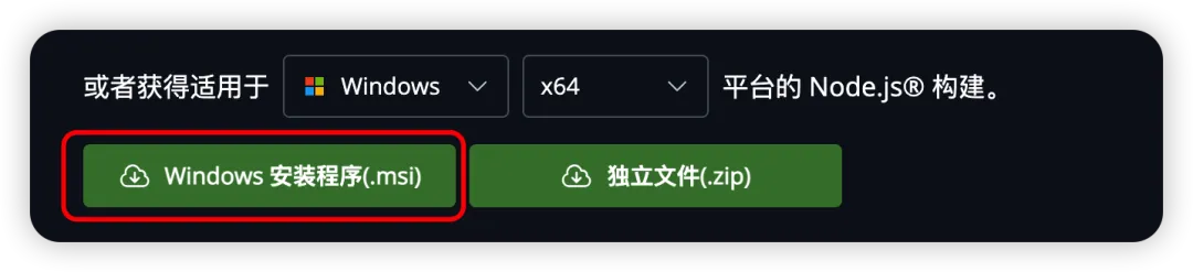 1、下载安装包:打开浏览器,访问 Node.js 的官方网站(https://nodejs.org),下载你电脑对应版本的Node.js安装程序,一般来说网站会默认给你选好,直接下载就行。