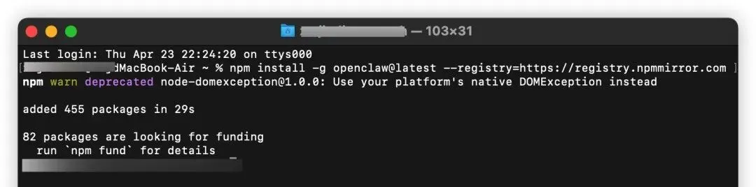 npm install -g openclaw@latest --registry=https://registry.npmmirror.com
