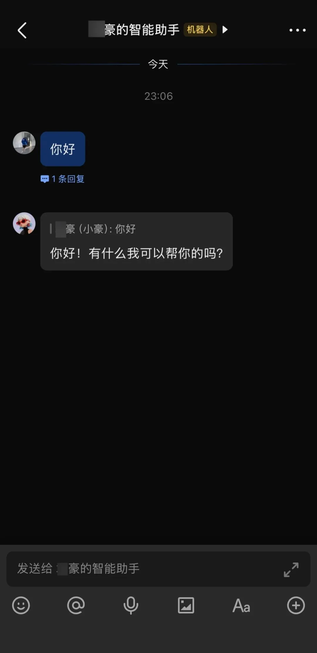 在飞书APP打开刚刚创建的应用(即飞书机器人) -