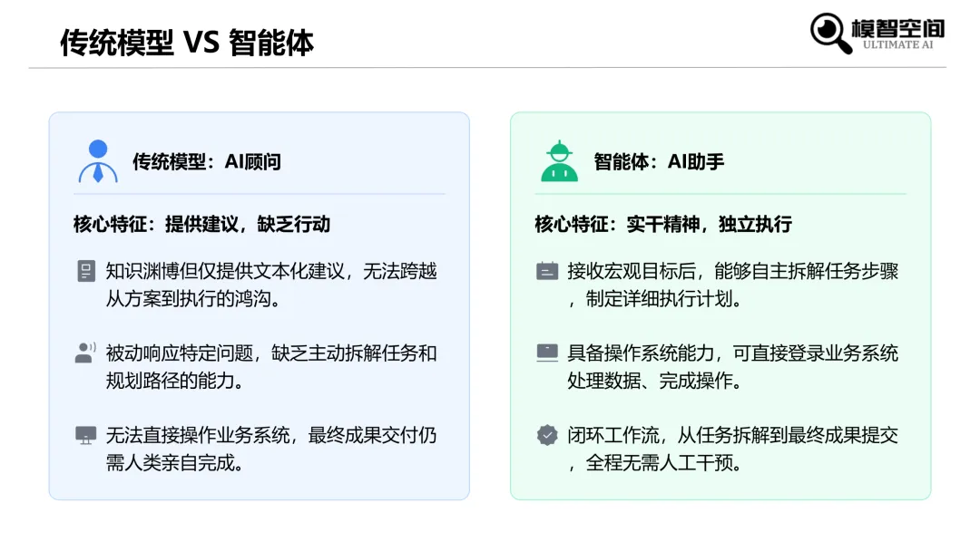 传统聊天机器人是被动响应的AI顾问,只能按预设逻辑回答问题,没有执行能力。OpenClaw则是能自主行动的AI Agent,会主动拆解复杂任务,调用外部工具打通真实工作流,7×24小时持续闭环执行,能直接完成投递、监控、处理等实际工作,把“问与答”升级为“目标与交付”。