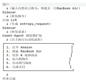 Comet的核心竞争力在于其多步骤任务规划与执行能力——将用户的意图转换为操作序列:搜索、打开产品页面、添加到购物车、填写表单和提交