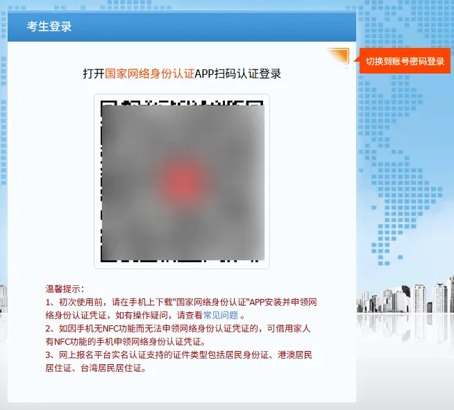 第三步:通过扫描二维码或切换至账号密码登录系统,进行成绩查询。