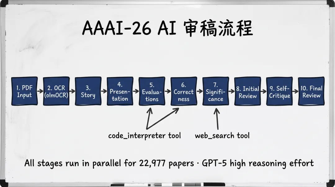 AAAI-26 AI 审稿系统正是在此基础上设计的多阶段、多工具、多模型协作流水线。