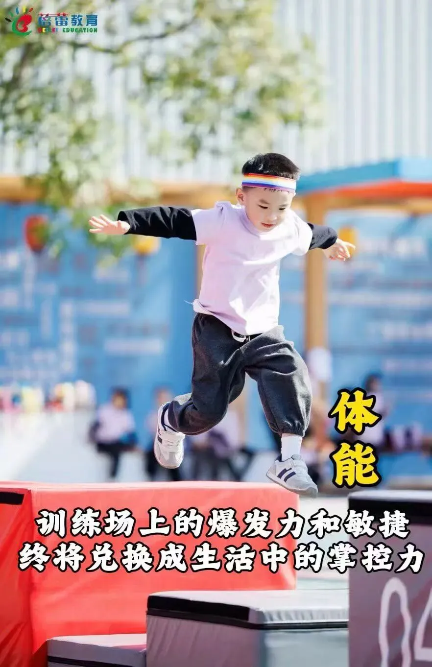强健体魄:每天2小时户外体能动感时光,趣味障碍挑战、感统训练、球类游戏、专业教练护航,让运动成为本能,加快孩子身体新陈代谢,释放身心的压迫感,引领孩子养成勇敢、自律、阳光向上的性格。